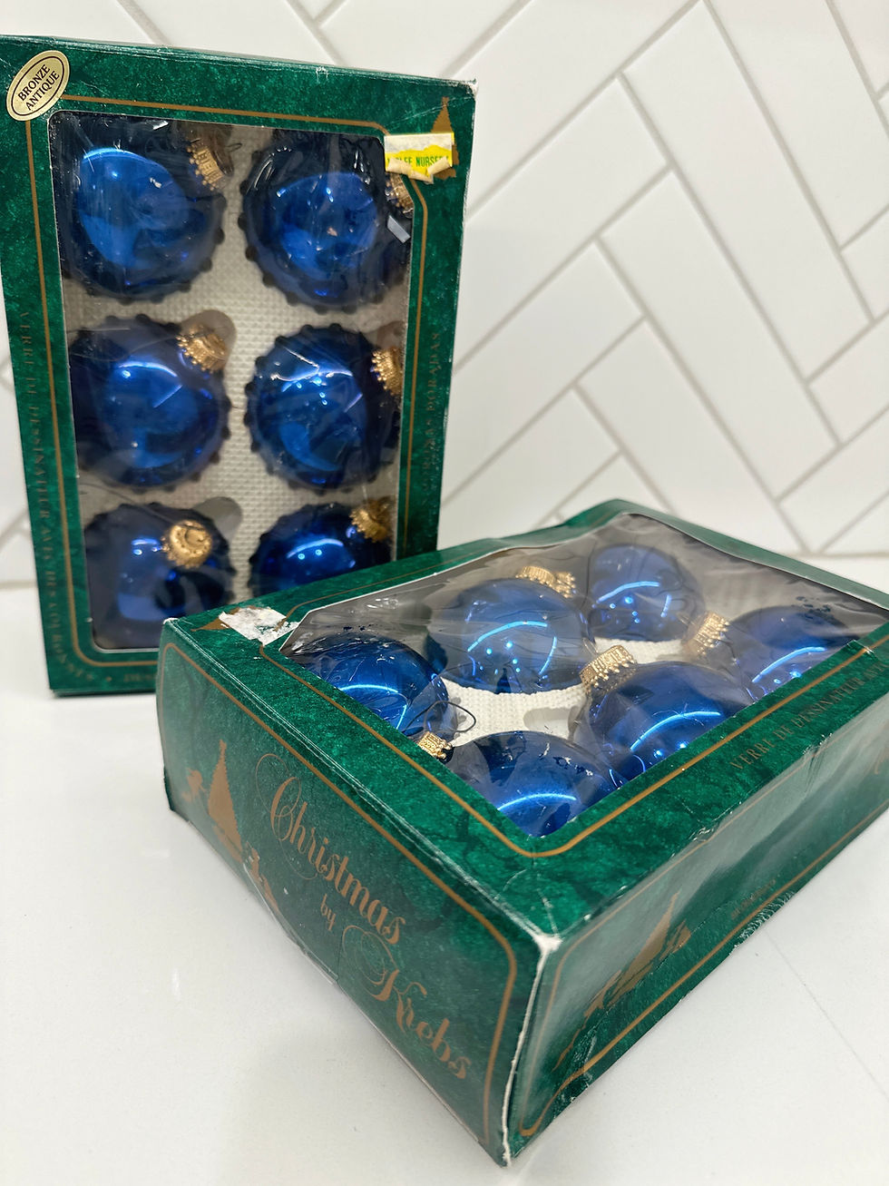 2 Sets of Vintage Christmas by Krebs Blue Glass Ball Ornaments