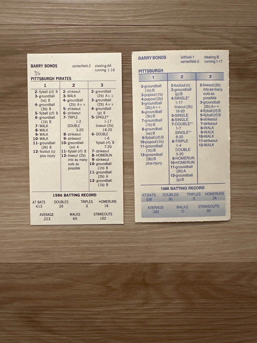 Barry Bonds Strat-O-Matic Cards Lot – 1986 & 1988 Pittsburgh Pirates