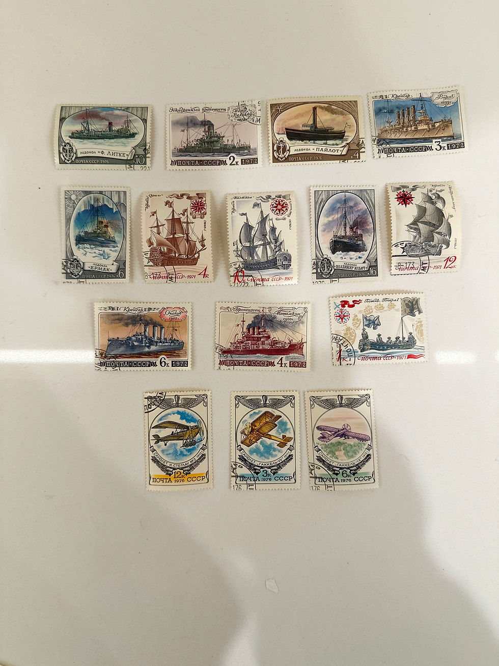 Set of 14 Vintage USSR Ships & Aviation Stamp Pack